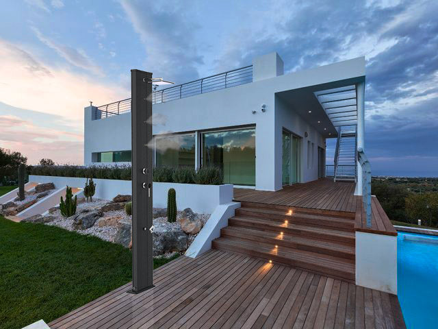 Douche solaire d'extérieur au design innovant et original , Dada S avec nébuliseur et lave-pieds d' ARKEMA .