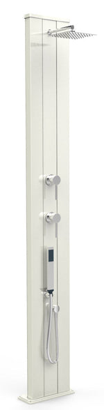 Douche Chauffante Solaire pour Piscine Extérieure de Jardin 40L avec Mitigeur Chaud-Froid et Douche Mobile 229x14x34cm Arkema Dada S TOP LINE Perla Bianca