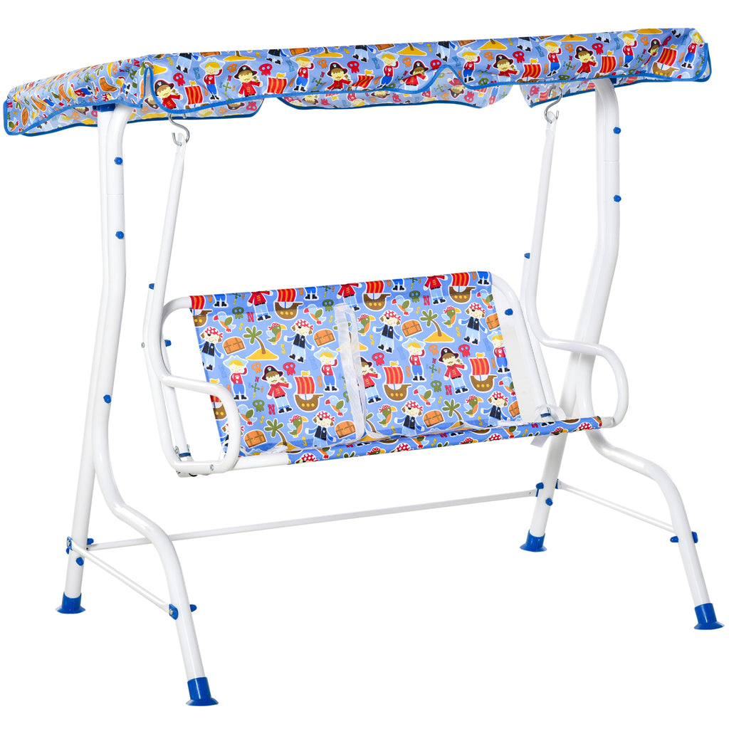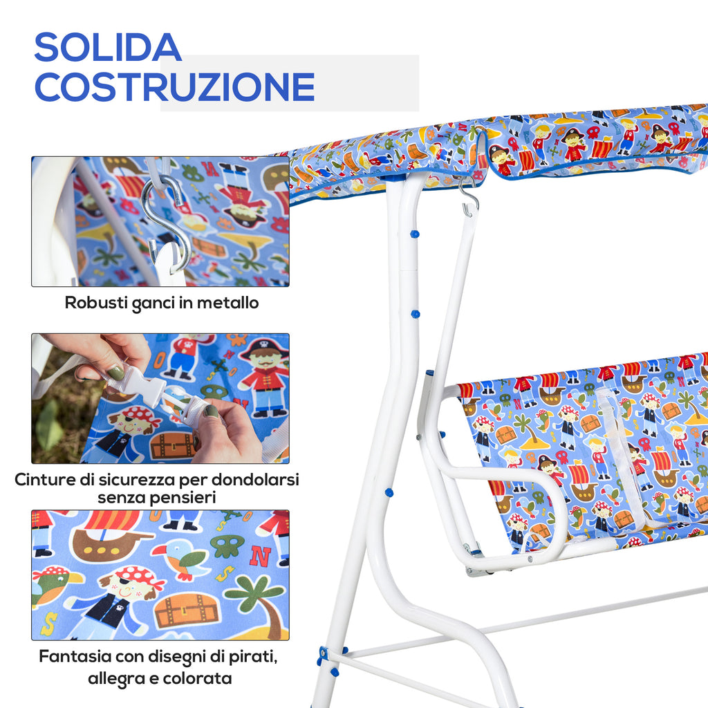 Balançoire 2 places pour enfant 110x70x110 cm en métal et polyester bleu
