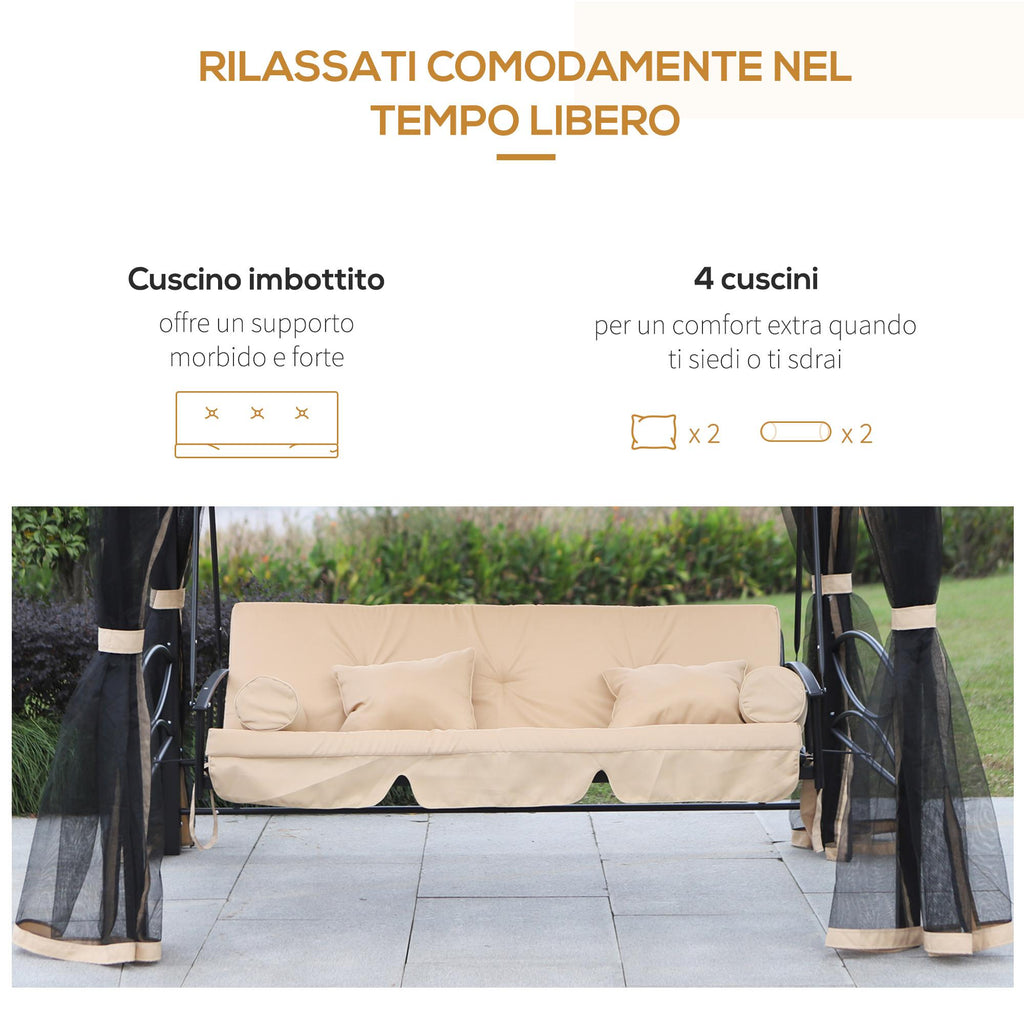 Chaise à bascule 3 places 256x172x248 cm avec housse de tonnelle beige et noire et moustiquaire