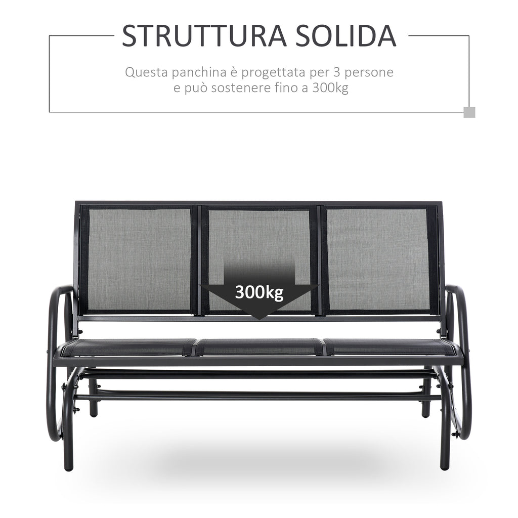 Balançoire de jardin 3 places 151x75x85 cm en métal et textilène noir
