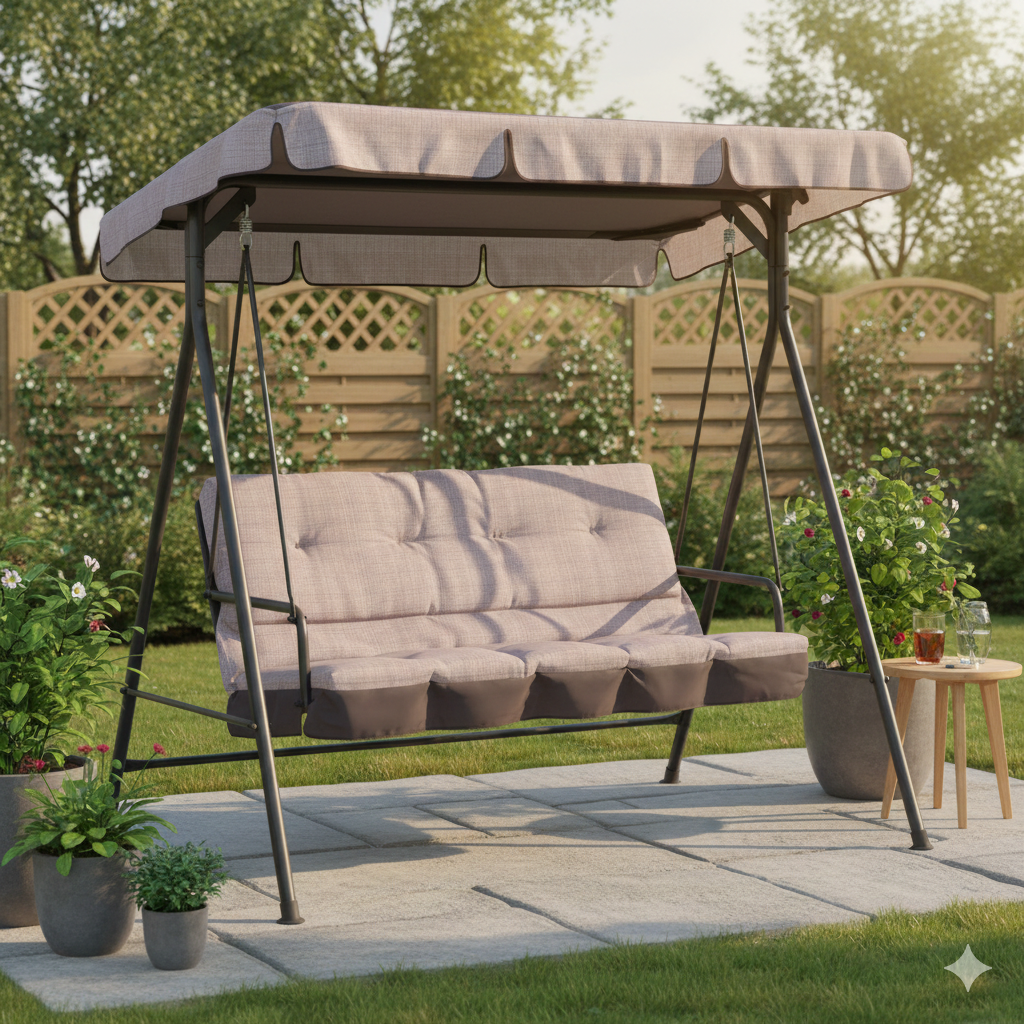 Balançoire de jardin 3 places 160x118x160 cm en fer et polyester Pemba Beige