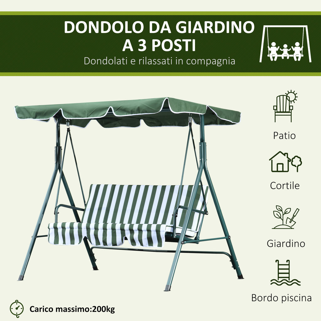 Balançoire de jardin 3 places 170x110x152 cm Pivotant Vert et Blanc