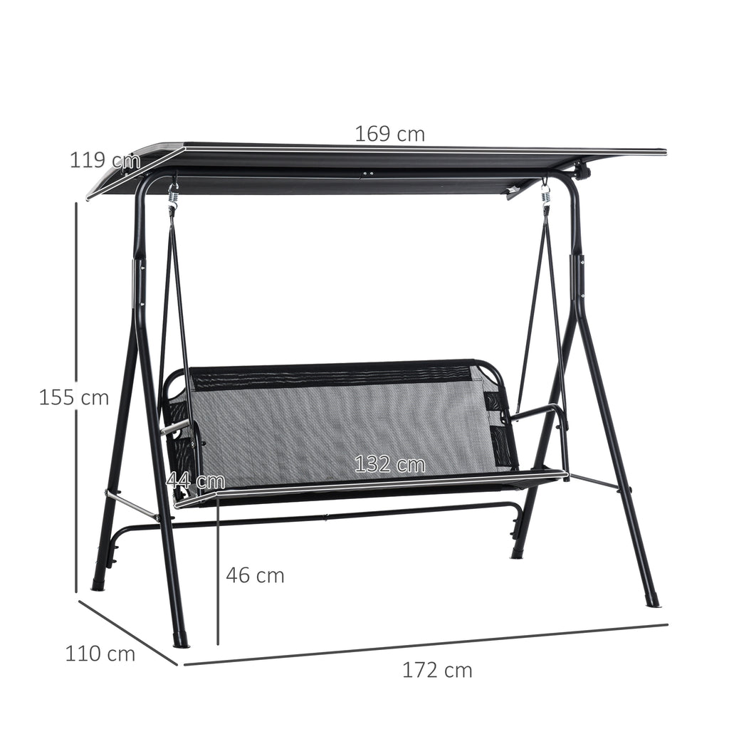Balançoire de jardin 3 places 172x110x155 cm en métal et textilène noir
