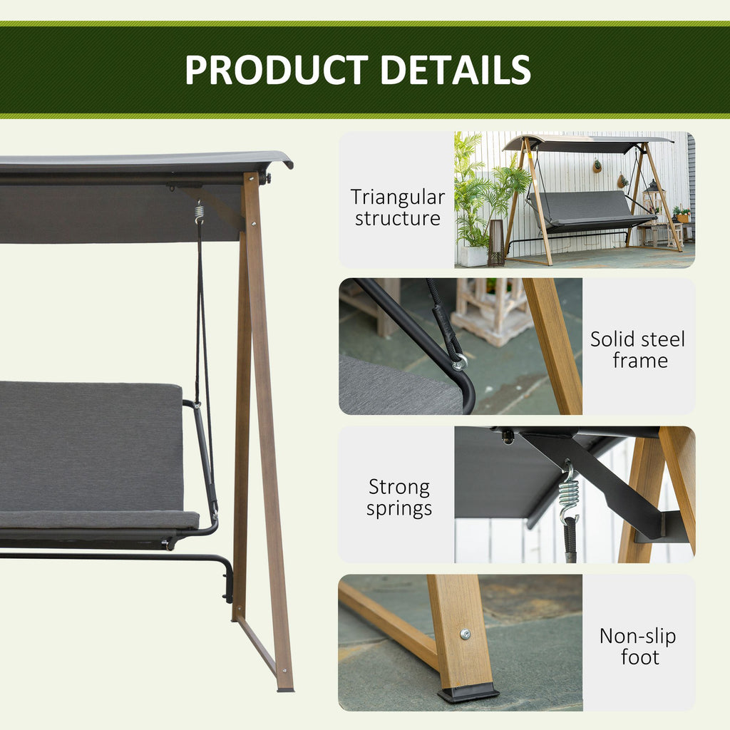 Dondolo 3 Posti da Giardino 224x133x173 cm in Acciaio Grigio