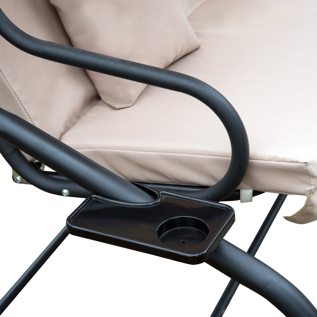Fauteuil à Bascule de Jardin 3 Places avec Dossier Inclinable pour Fonction Lit Beige