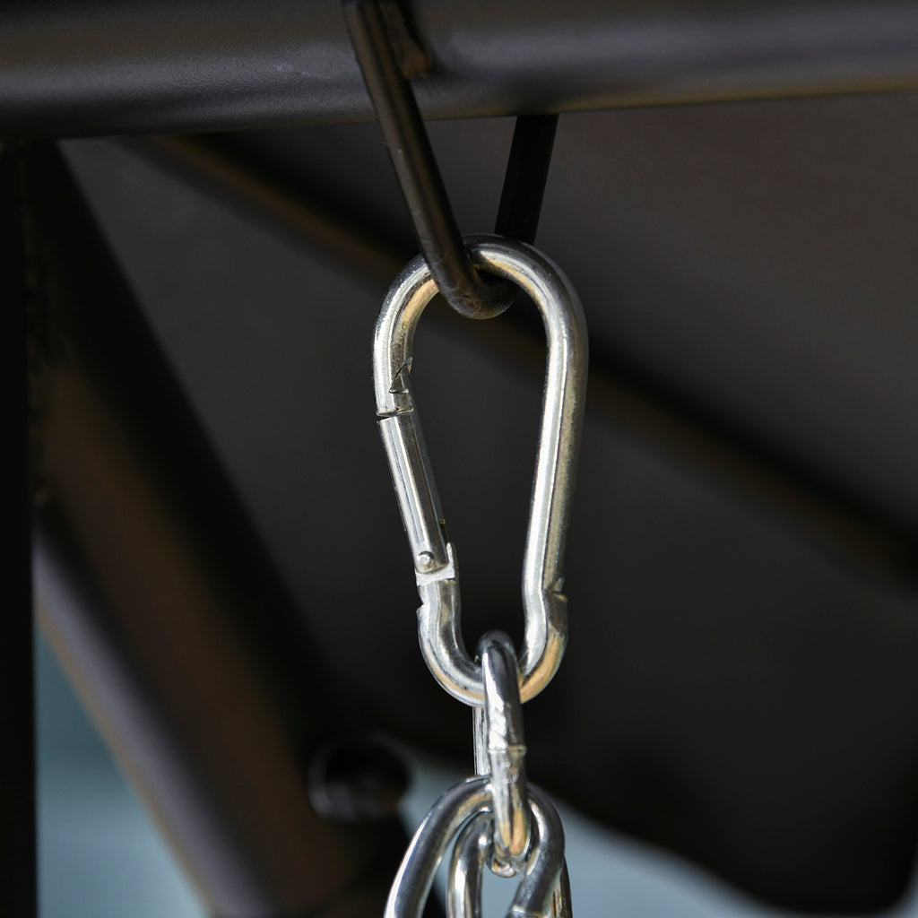 - SUSPENDU : Vous pouvez suspendre la structure au plafond à l'aide des chaînes en acier incluses dans le colis.