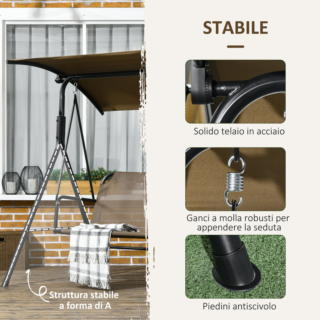 Dondolo da Giardino 3 Posti 172x110x153 cm con Copertura Regolabile in Acciaio e Poliestere Marrone e Grigio