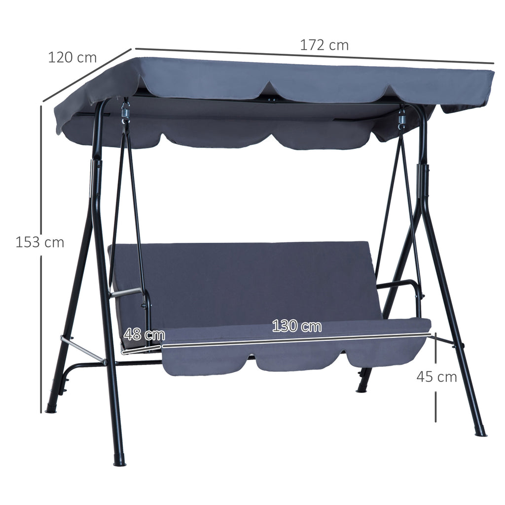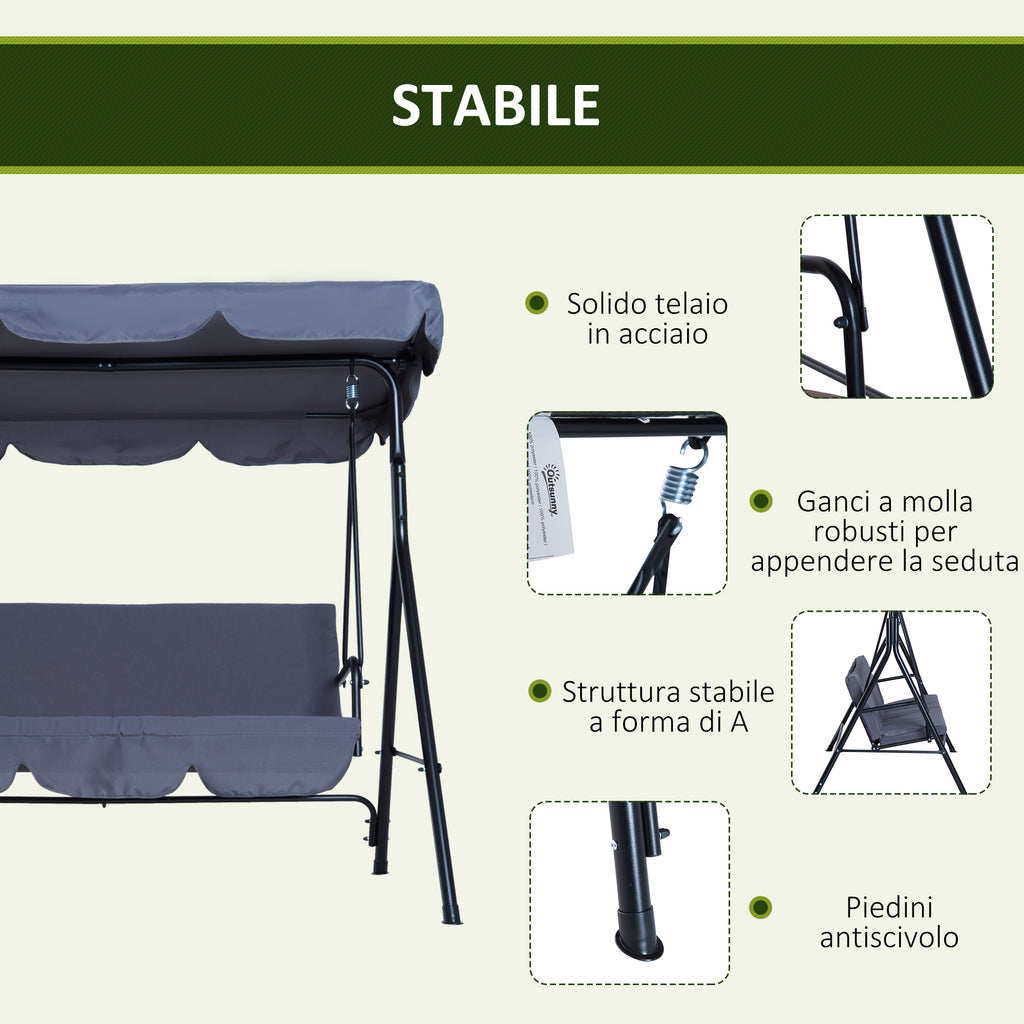 Balançoire de jardin 3 places avec auvent inclinable en tissu polyester gris