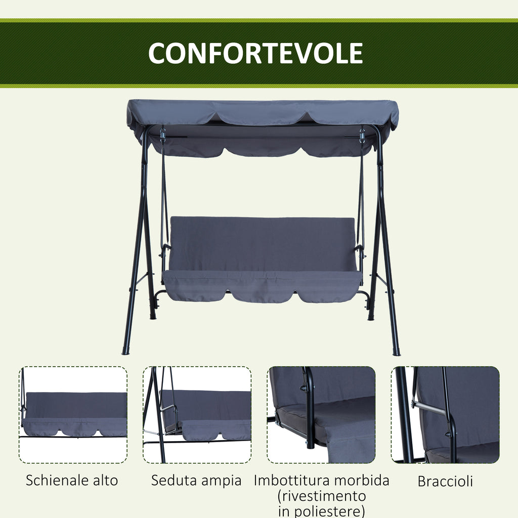 Balançoire de jardin 3 places avec parasol inclinable en tissu polyester gris