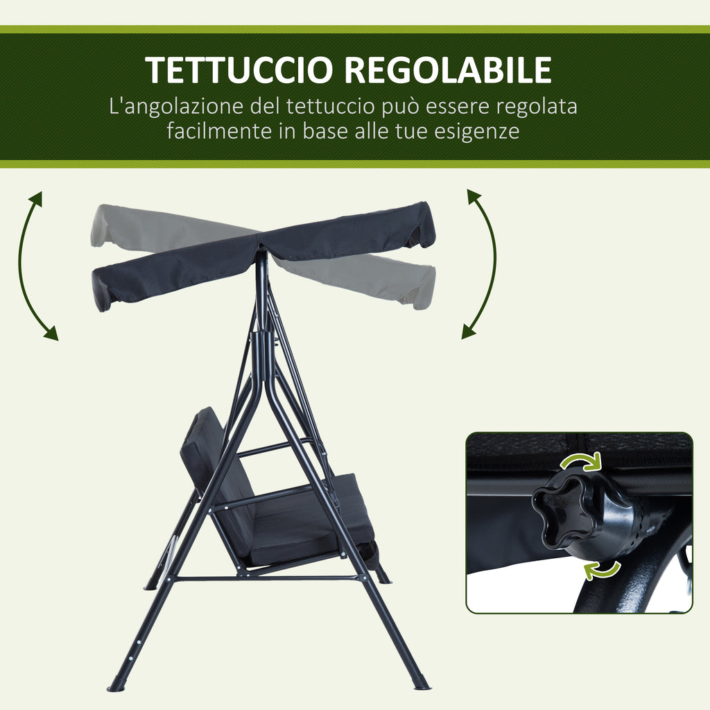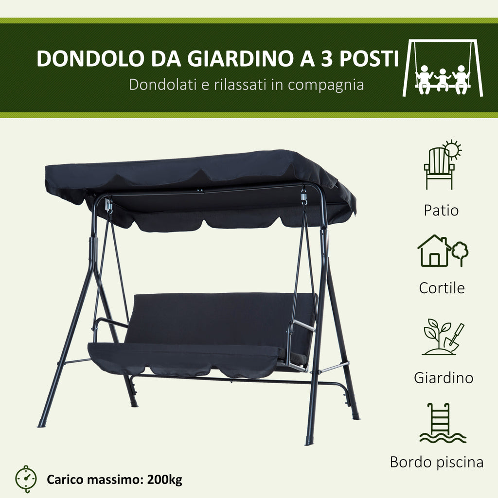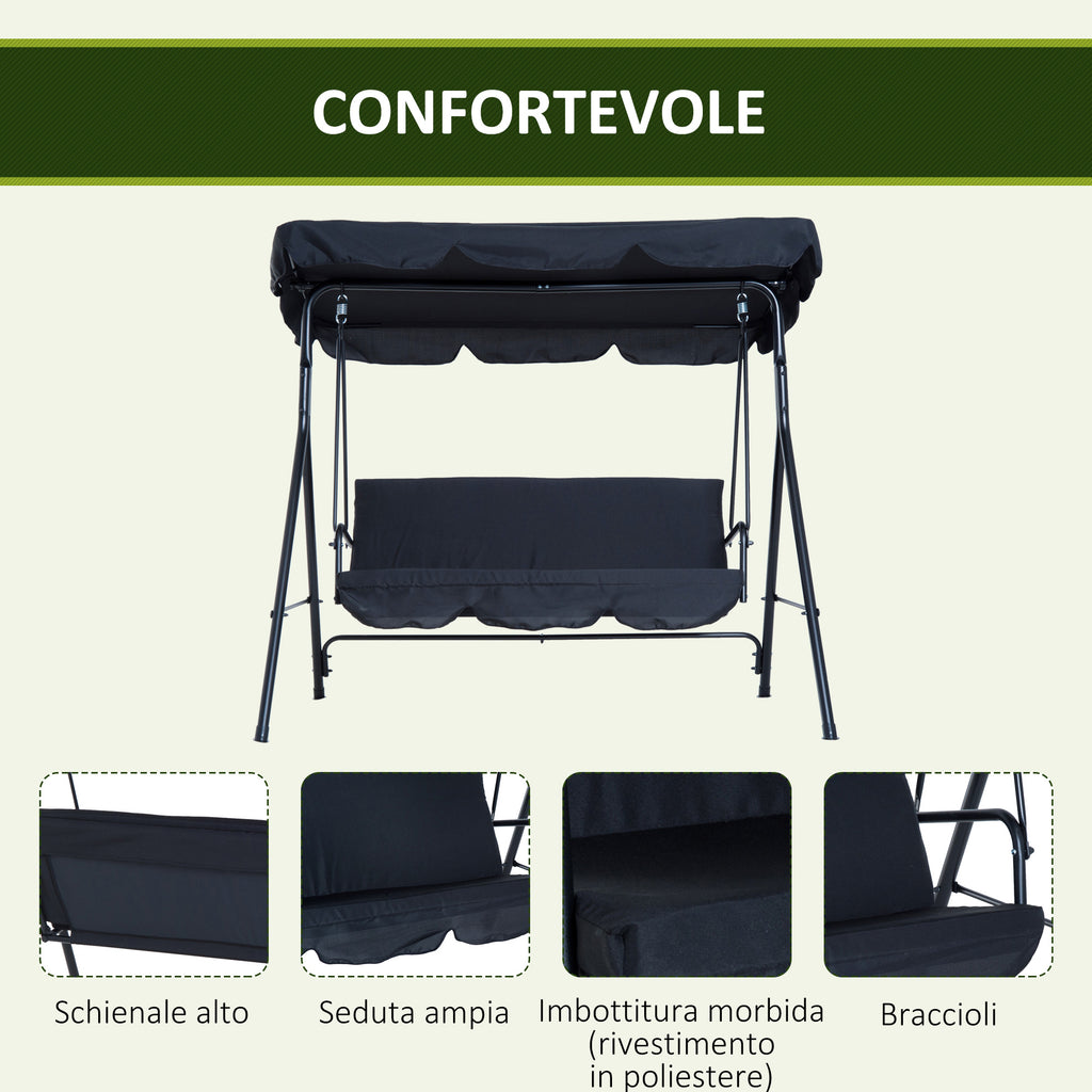 Balançoire de jardin 3 places avec parasol inclinable en acier noir