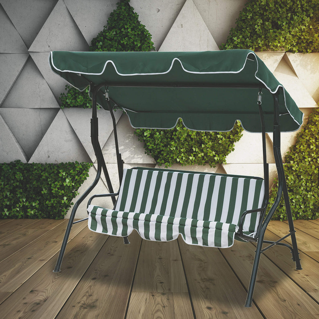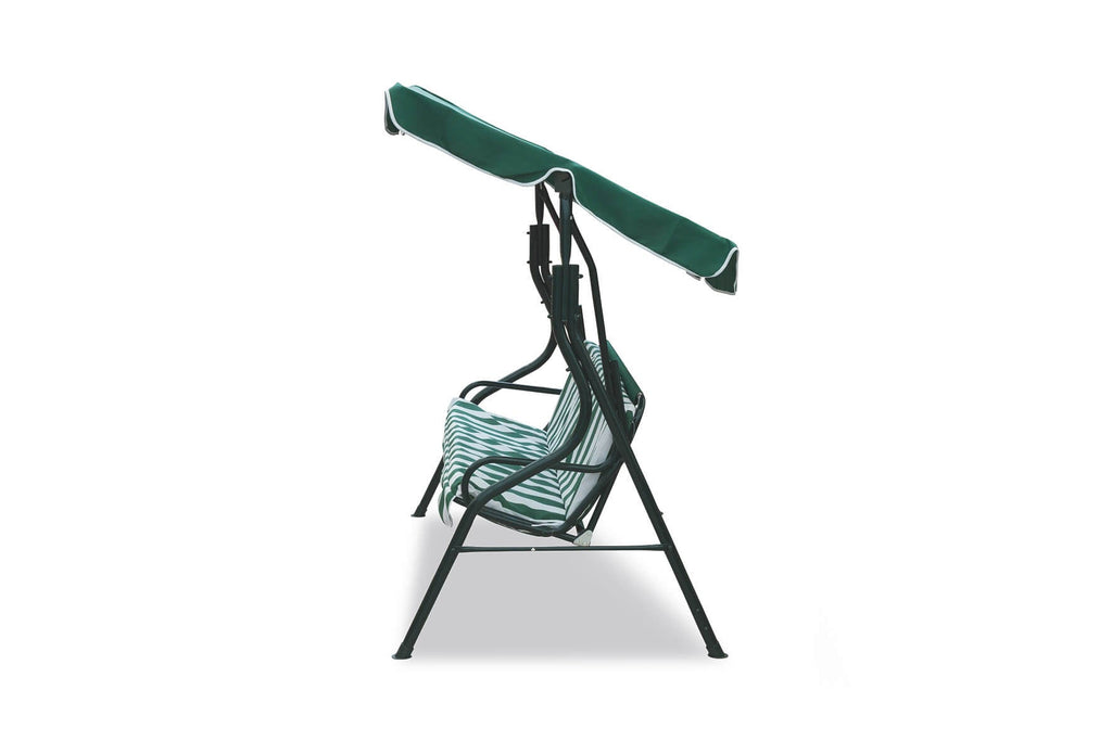 Balançoire de jardin en fer 3 places Tabby verte et blanche