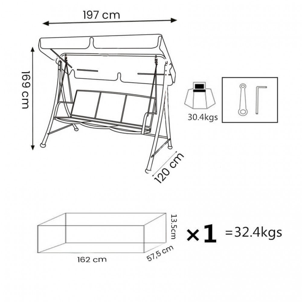 Chaise à bascule Laconia 120x197x169 h cm en textilène blanc