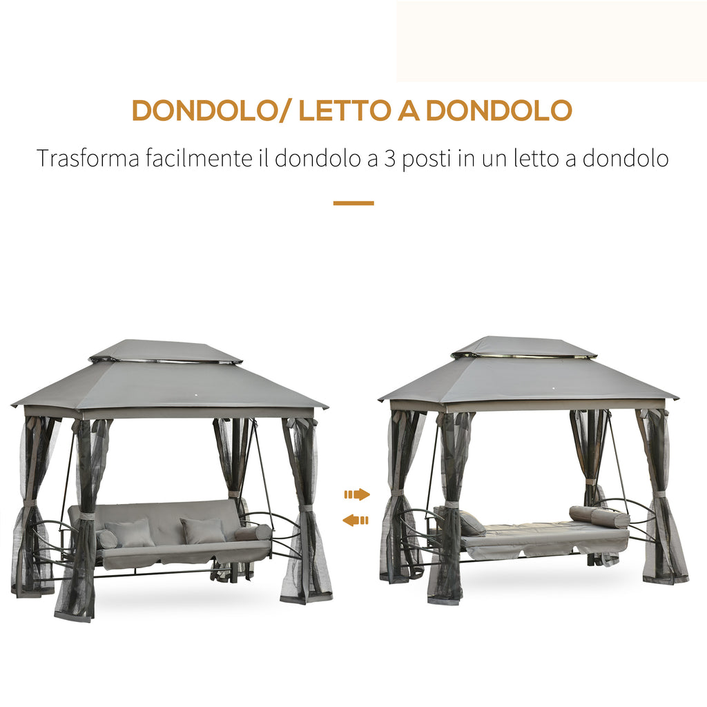 Lit balançoire 3 places avec tonnelle de jardin 256x172x248 cm avec moustiquaire et coussins gris