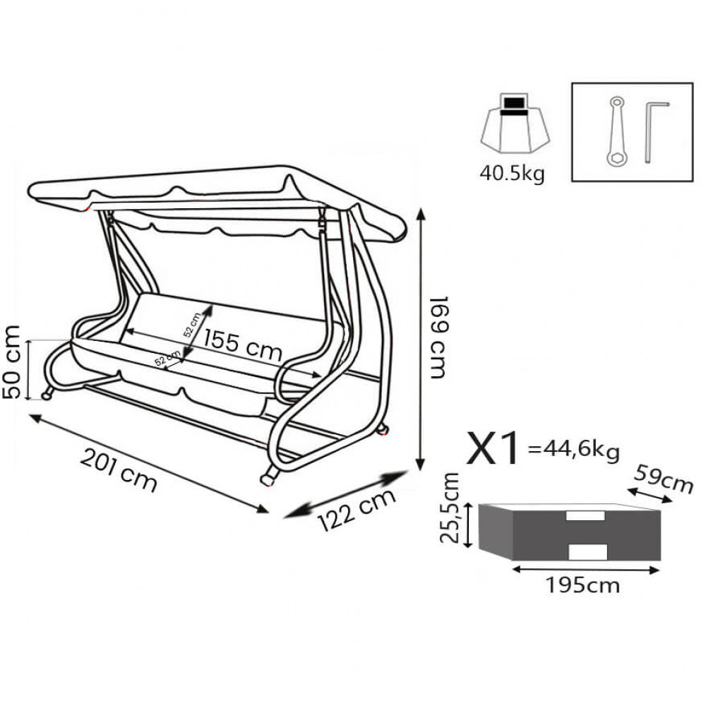 Lit à bascule Jim avec coussins 202x114x169 h cm en acier noir