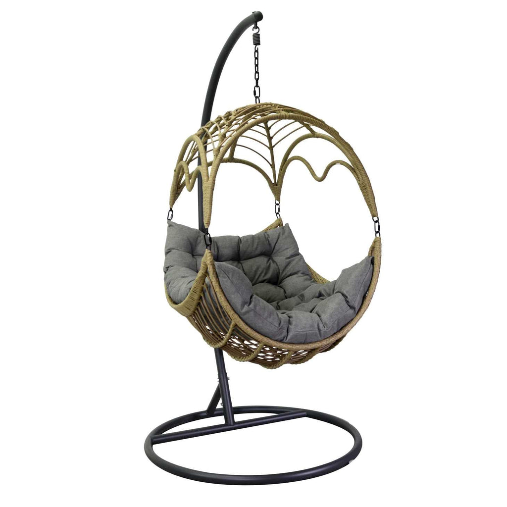 La struttura grigia di questo elegante cesto beige, con cuscini grigio chiaro, si distingue per le sue dimensioni generose: il cesto misura cm 90x94h110, mentre la struttura ha un diametro di cm Ø101h200. Realizzata in acciaio color grigio scuro e dotata di intreccio in polyrattan, questa composizione offre comfort e resistenza, con una portata massima di 120kg. Il cuscino sfoderabile in poliestere color grigio chiaro completa con stile questo arredo dal design moderno.