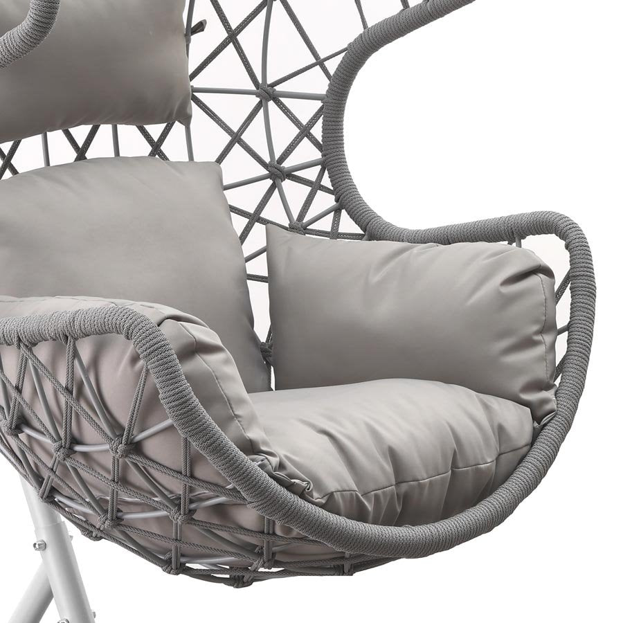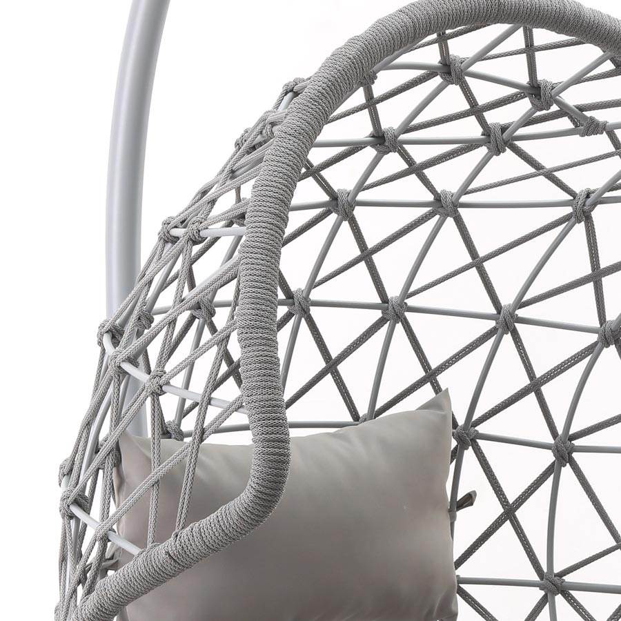 Dondolo Pensile da Giardino con cuscino Ø105x186 cm con intreccio di corda grigia