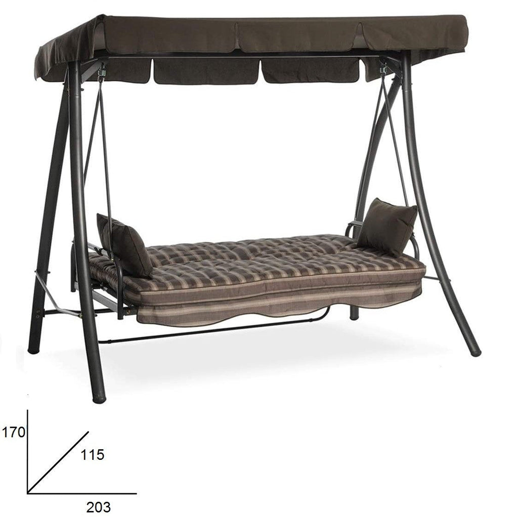 Idéal pour bronzer ou lire en toute détente. De plus, la capote est réglable pour une protection optimale contre la pluie et les rayons UV. Fait de matériaux de haute qualité. Le cadre en acier enduit de poudre a une grande capacité de charge allant jusqu'à 340 kg. Le coussin d'assise, le coussin de dossier et deux coussins décoratifs sont fournis.