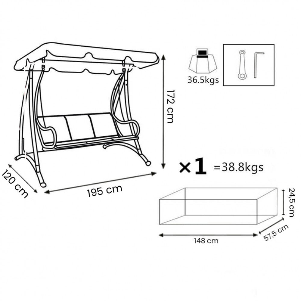 Chaise à bascule Texty 195x120x172 h cm en textilène noir