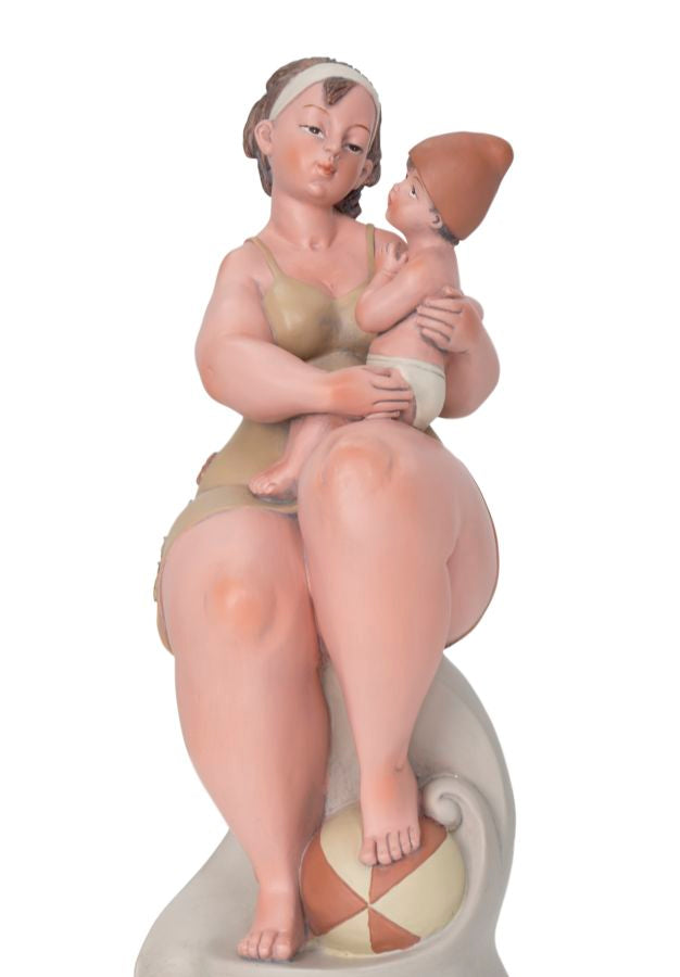 Statue de femme avec enfant. Les vêtements traditionnels rappellent le cinéma néoréaliste italien des années 60. Les décorations élégantes en résine vous permettent de donner une touche de personnalité à votre maison ou de devenir d'excellentes idées cadeaux.