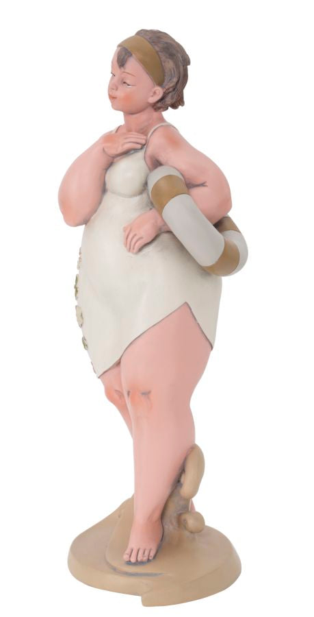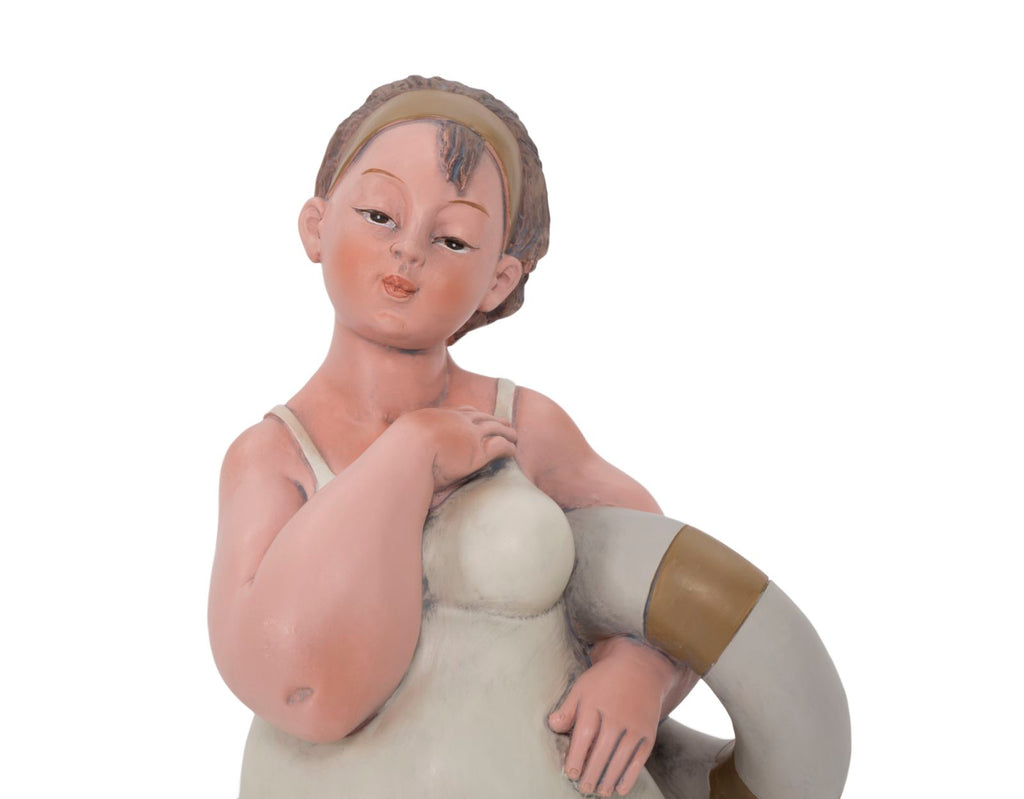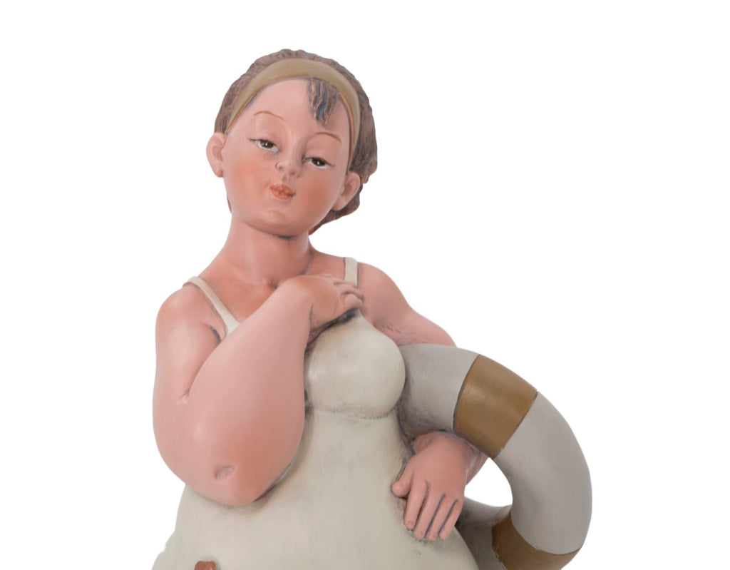 Statue d'une femme avec une bouée de sauvetage. Les vêtements traditionnels rappellent le cinéma néoréaliste italien des années 60. Les décorations élégantes en résine vous permettent de donner une touche de personnalité à votre maison ou de devenir d'excellentes idées cadeaux.