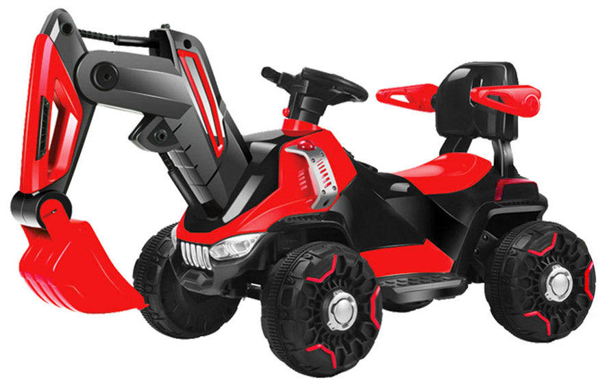 Bulldozer électrique pour enfants avec batterie 6 Volts et lumières. Pelle électrique pour enfants, rouge, avec bras mécanique et fonction pelle. Le Bulldozer dispose d'un moteur d'entraînement puissant et d'une batterie de 6 V qui garantissent des performances de conduite puissantes pendant longtemps. La pelle est équipée de fonctions de musique, de lumières LED, de bras mécanique, de pelle et de marche arrière. De plus, le bras du Digger peut être levé et abaissé à l'aide des commandes situées sur le volant.