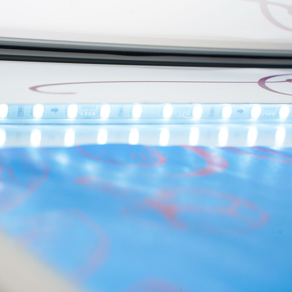 • Anta in policarbonato trasparente con apertura a ribalta e serratura con chiavi