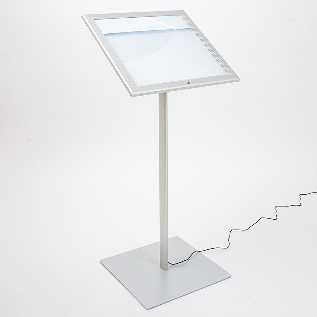 Espositore a Leggio con Piantana 51,4x79 cm in Alluminio con Led Porta Menù SilverEspositore a Leggio con Piantana 51,4x79 cm in Alluminio con Led Porta Menù Silver
