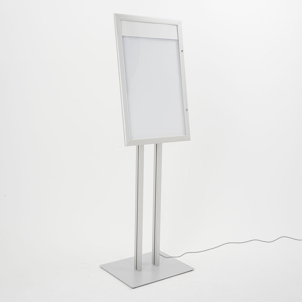 Espositore a Leggio con Piantana 51,4x79 cm in Alluminio con Led Porta Menù Silver