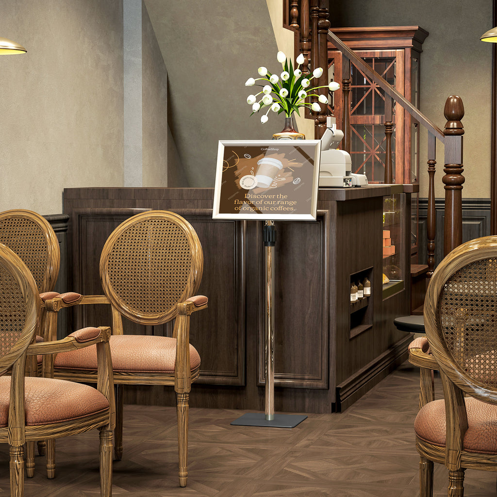 Espositore per Poster A3 Altezza e Inclinazione Regolabili Acciaio e Alluminio Argento