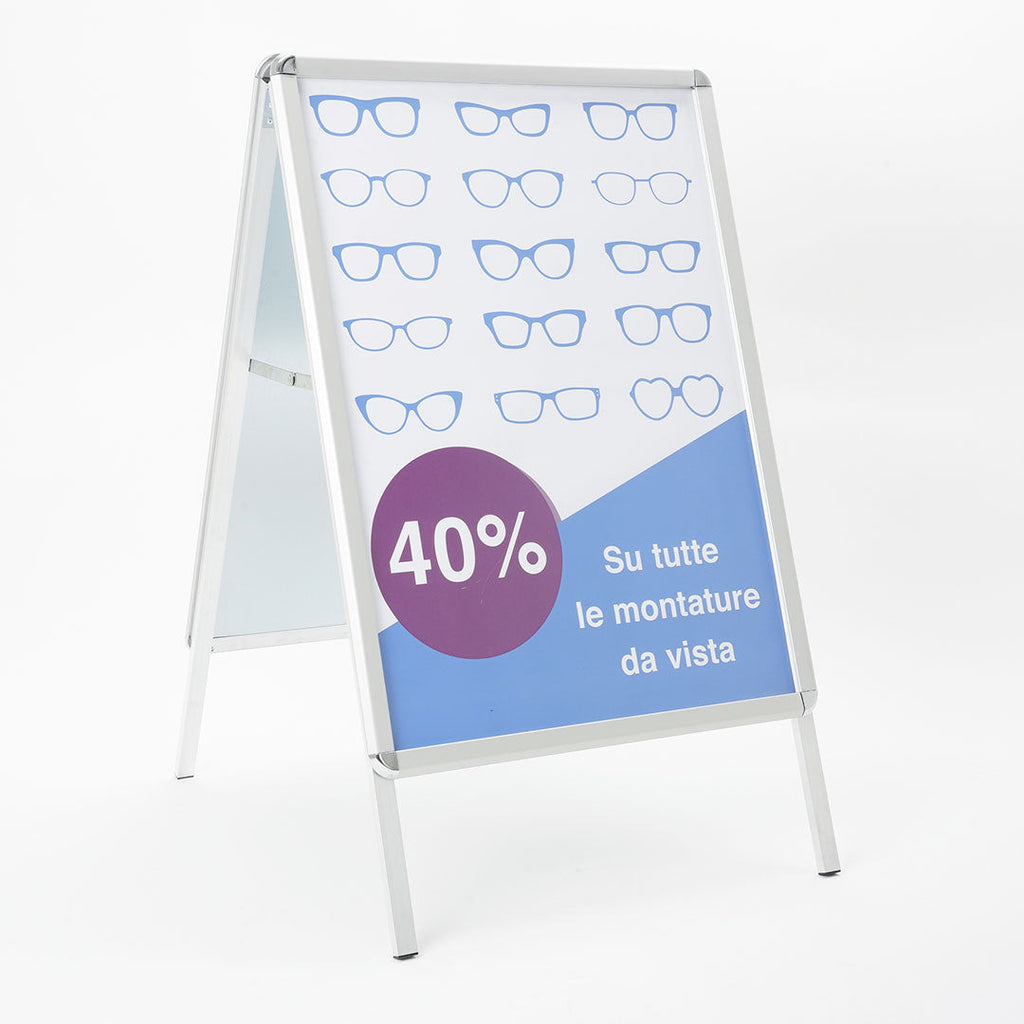 Espositore Pubblicitario Bifacciale a Cavalletto Pieghevole 63,7x101,5x75,5 cm in Alluminio da Esterno Antivento Silver