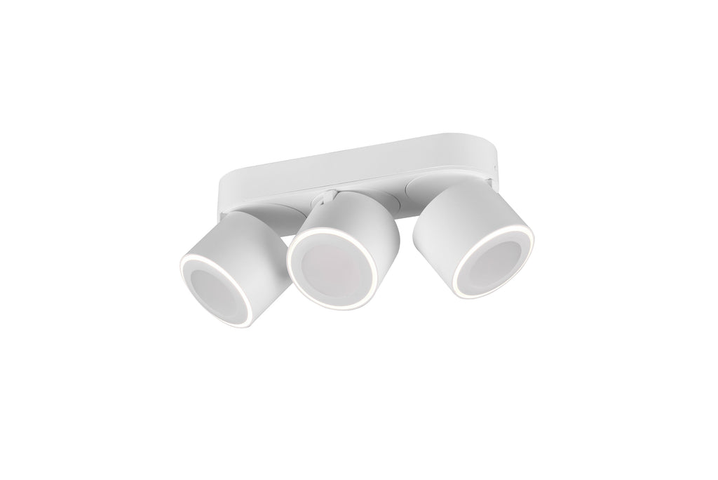 Barre Taurus 3 Spots Led Métal Blanc Réglable Tournant Bi-Emission Interrupteurs Séparés L. 27Cm