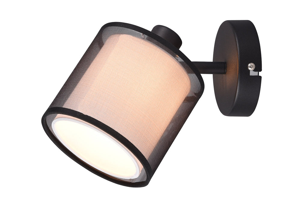 Burton Spot Singolo Orientabile Metallo Nero Paralume Bianco e Diffusore Esterno Traforato Nero H. 20Cm