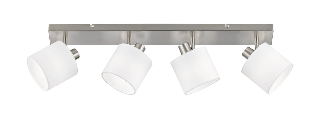 Tommy Barra 4 Spots Avec Diffuseurs Abat Jour Blanc Socle Métal Acier Satiné L.75Cm