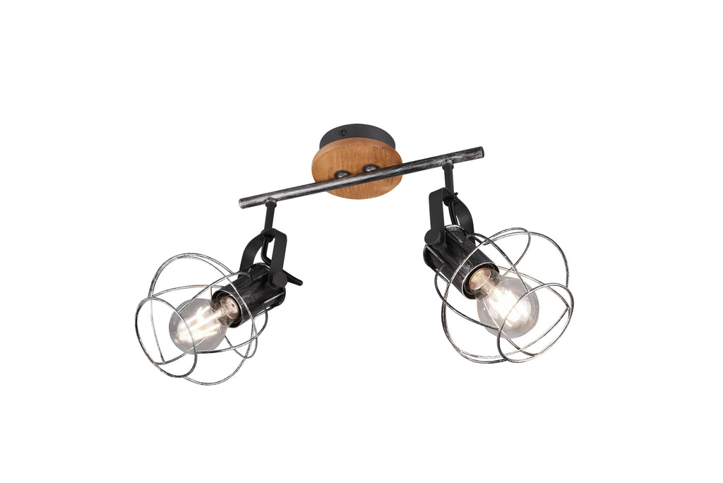 Madras Barra 2 Spots Bois Et Métal Effet Argent Vieilli L.30Cm