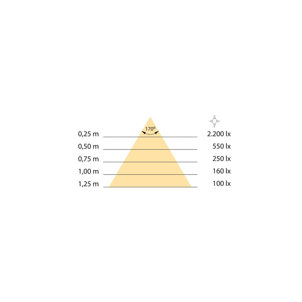 - Faisceau lumineux de 170°, homogène grâce à son diffuseur et son réflecteur opalins.