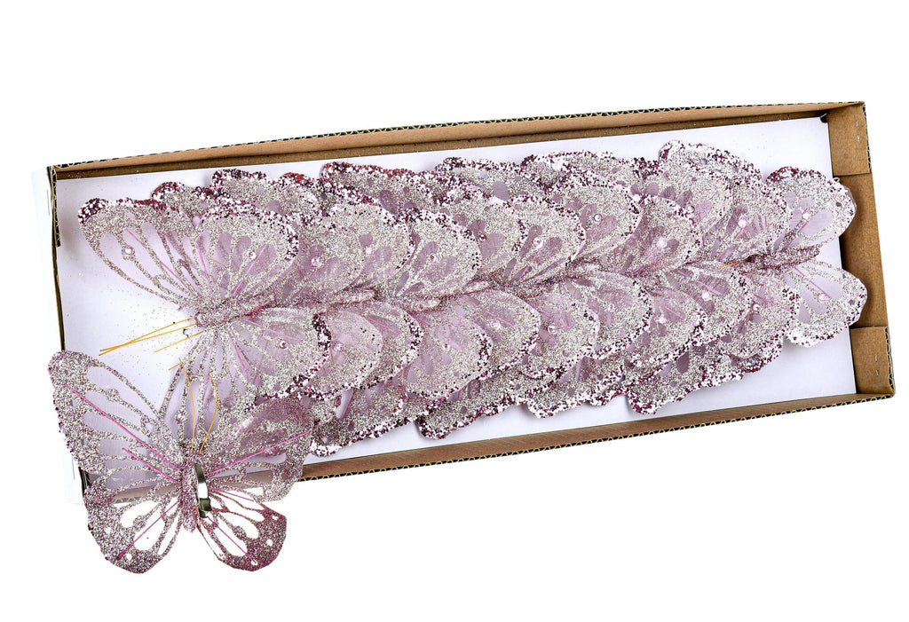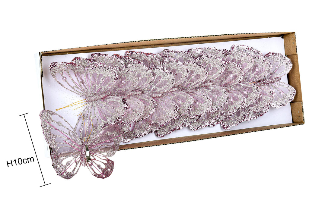 Papillons avec Paillettes et Clips 24 Pièces Ø10 cm Rose