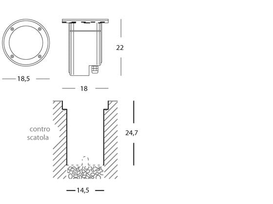 Encastré de sol rond Line Route walk-over couleur acier pour l'extérieur