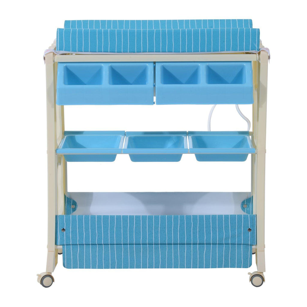 Table à langer en plastique bleu non toxique avec plateau et compartiments de rangement 81x53x102 cm