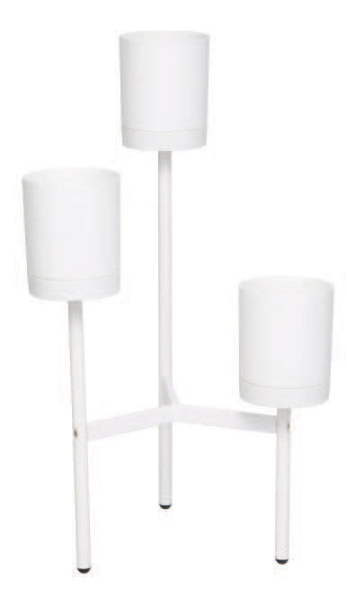 Les trois jardinières sont en polypropylène blanc et sont équipées d'un fond perforé pour permettre à l'excès d'eau de s'échapper. La base est en alliage d'acier peint en blanc. Il est nécessaire de nettoyer régulièrement la partie en plastique avec un chiffon propre ou une éponge imbibée d'eau tiède, en évitant l'utilisation d'objets pointus pour ne pas rayer la surface. Pour la partie métallique, essuyez simplement avec un chiffon sec.