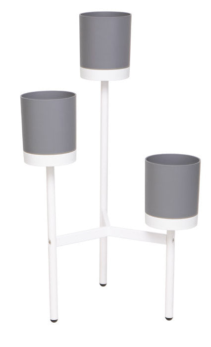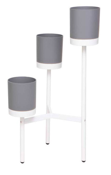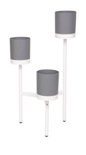 Les trois jardinières sont en polypropylène blanc et sont équipées d'un fond perforé pour permettre à l'excès d'eau de s'échapper. La base est en alliage d'acier peint en blanc. Il est nécessaire de nettoyer régulièrement la partie en plastique avec un chiffon propre ou une éponge imbibée d'eau tiède, en évitant l'utilisation d'objets pointus pour ne pas rayer la surface. Pour la partie métallique, essuyez simplement avec un chiffon sec.
