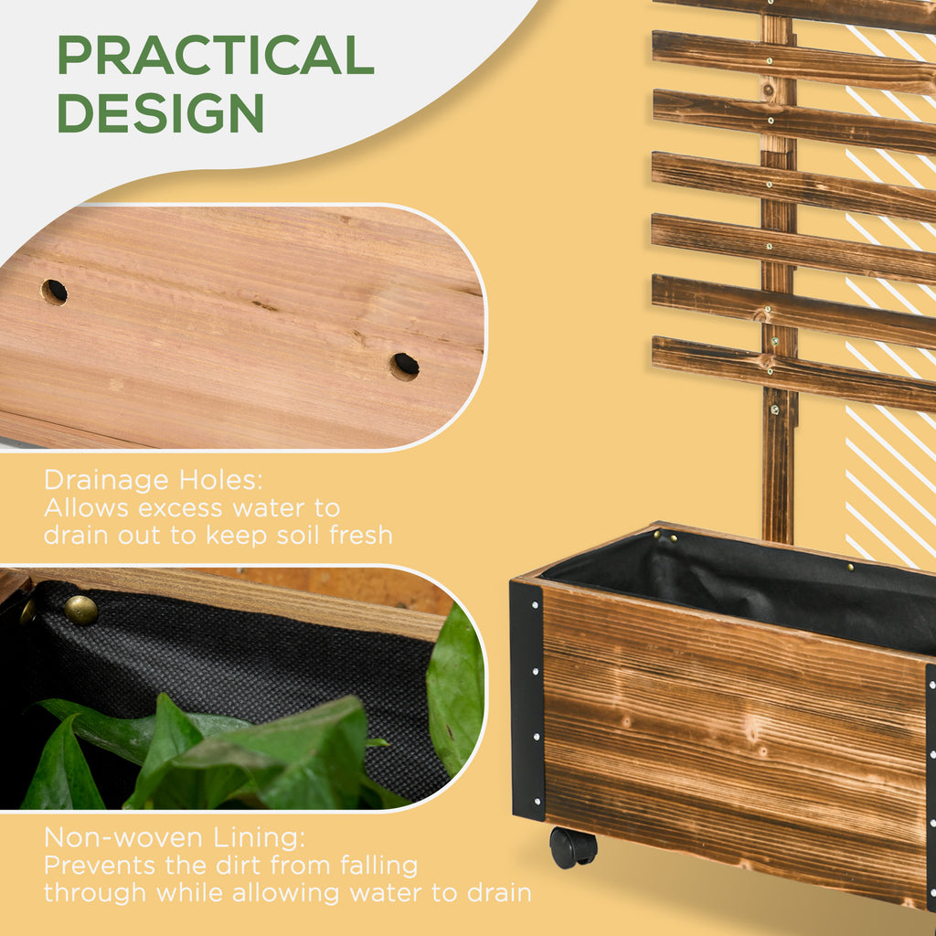 La nostra fioriera con traliccio dal design rialzato ti permette di avere una struttura pratica e gradevole per i tuoi ambienti. Sfrutta il traliccio presente per coltivare l'uva, la passiflora o l'edera senza problemi grazie al design rialzato. La fioriera da esterno è costruita con 4 ruote girevoli per spostare la struttura da un posto all'altro e catturare la giusta quantità di sole e ombra durante le diverse stagioni.