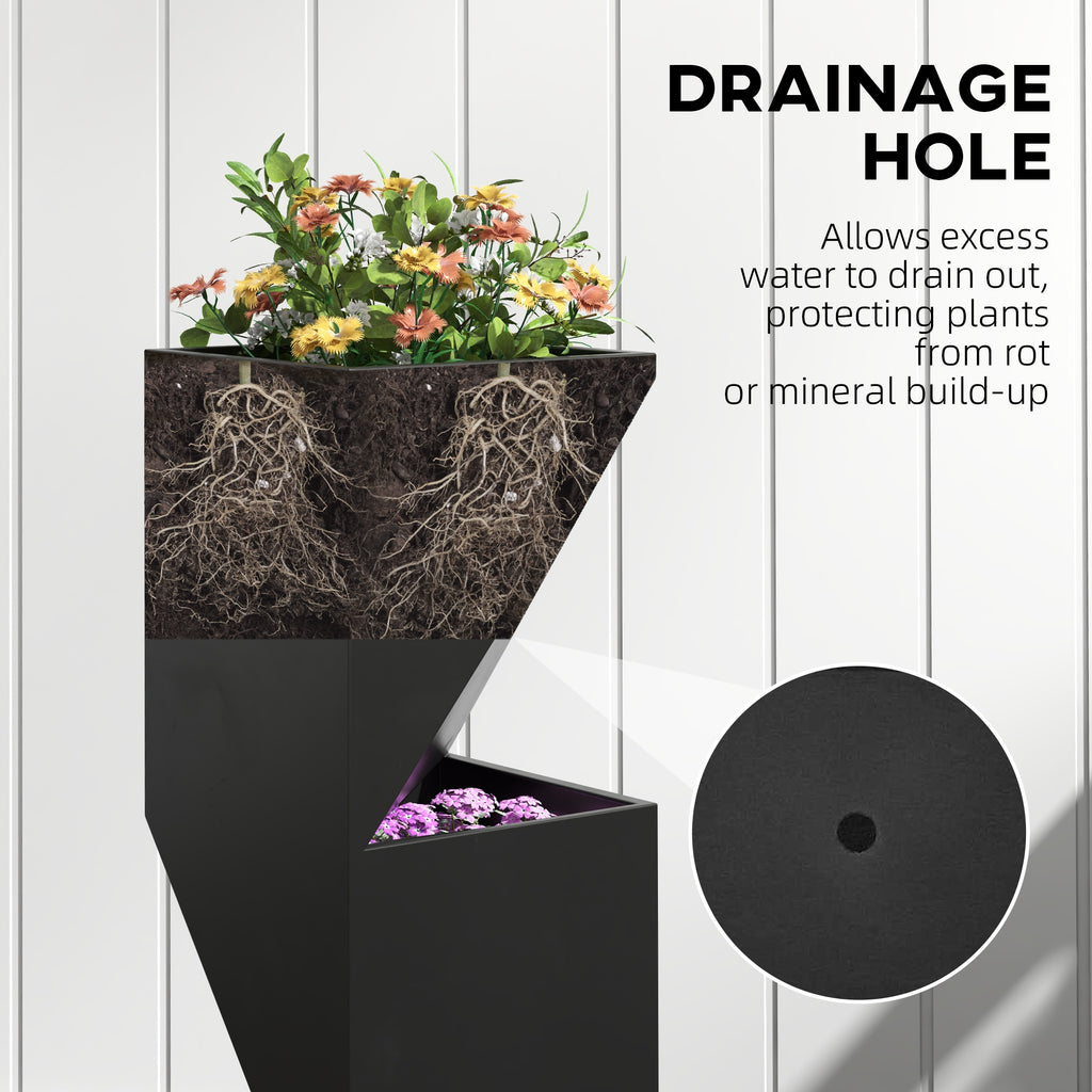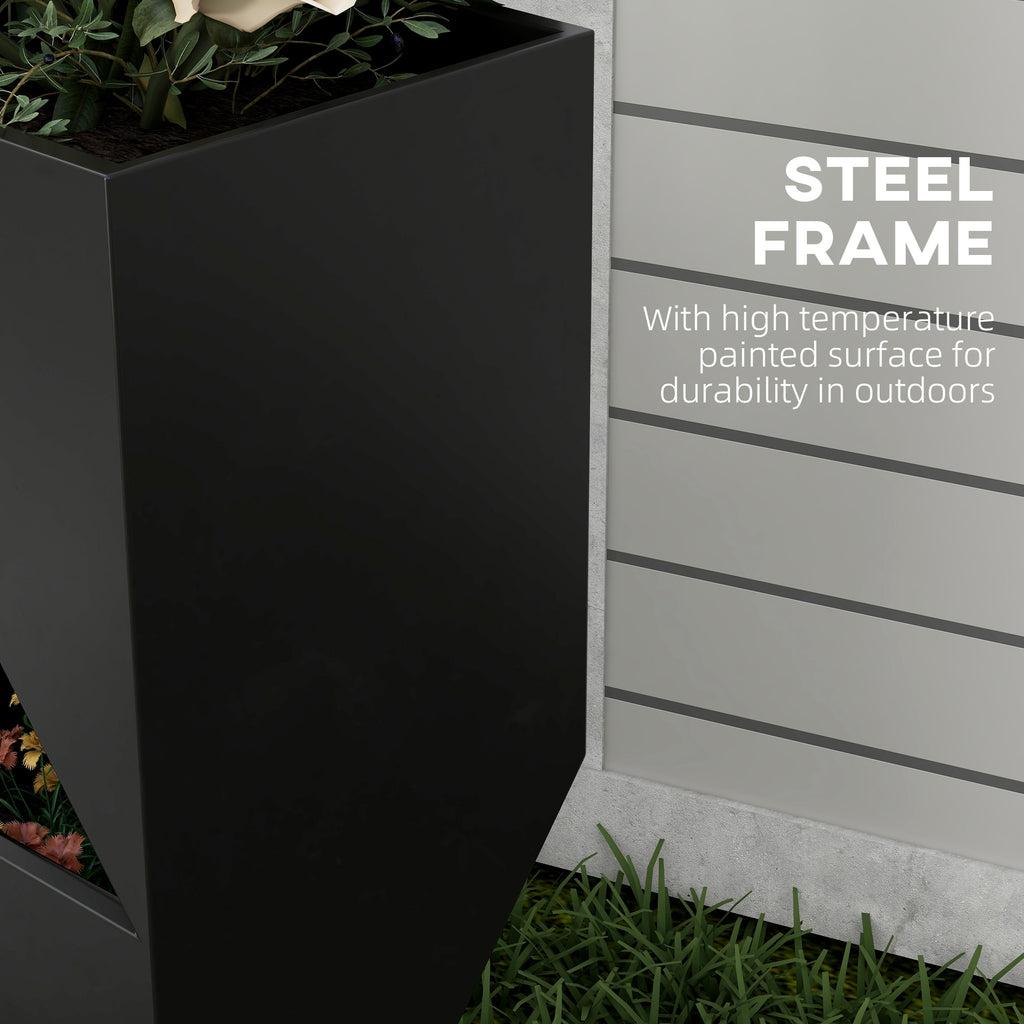 Fioriera da Esterno con 3 Aree di Coltivazione e Fori di Drenaggio 30x30x100 cm in Metallo Nero