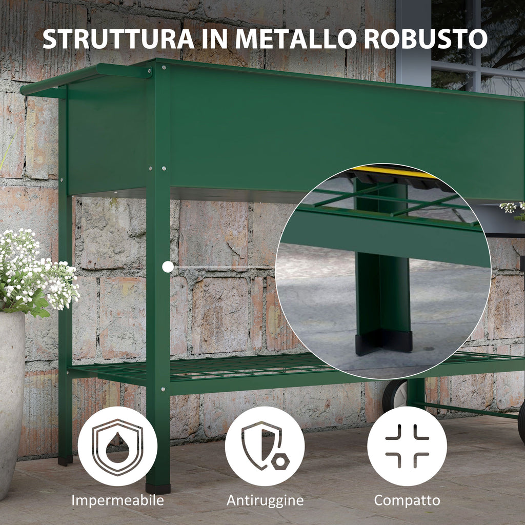 Fioriera da Esterno con Mensola Inferiore Portautensili 109x44x80 cm in Metallo Verde