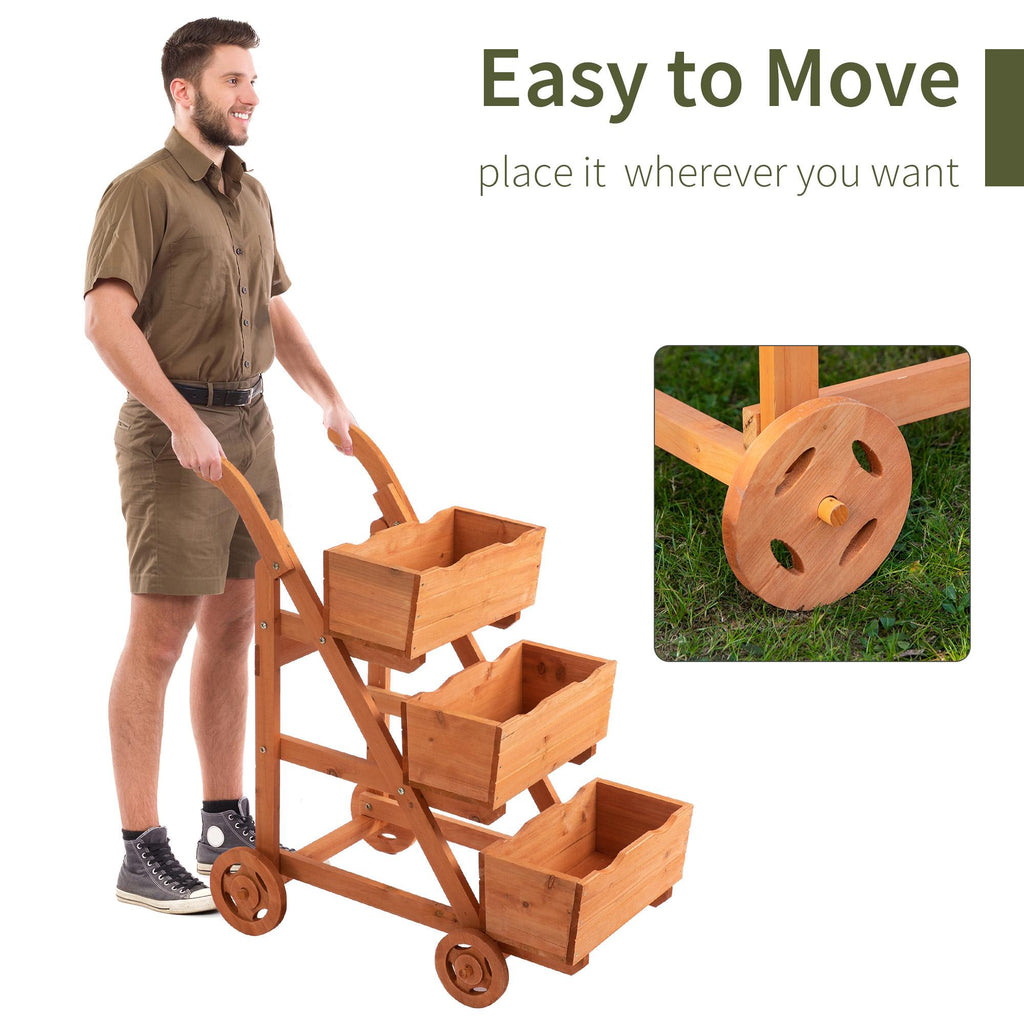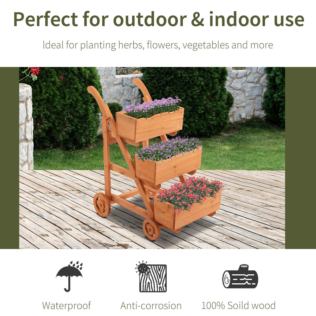 Jardinière de jardin 3 niveaux 48x82x89,5 cm avec roulettes en bois marron clair