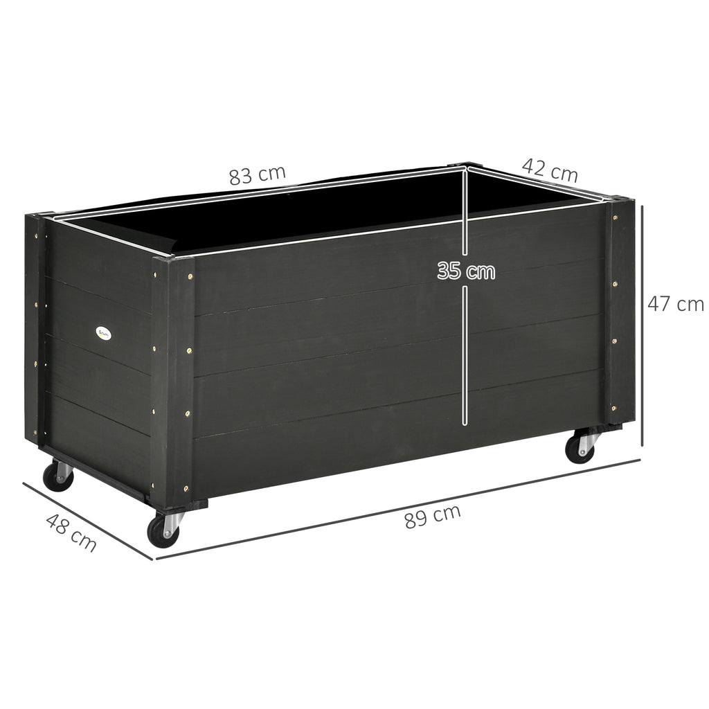 Fioriera da Giardino con Foro di Drenaggio e Rotelle 89x48x47 cm in Legno di Abete Nera
