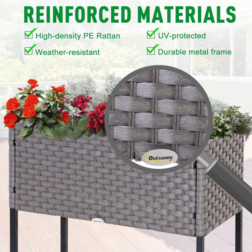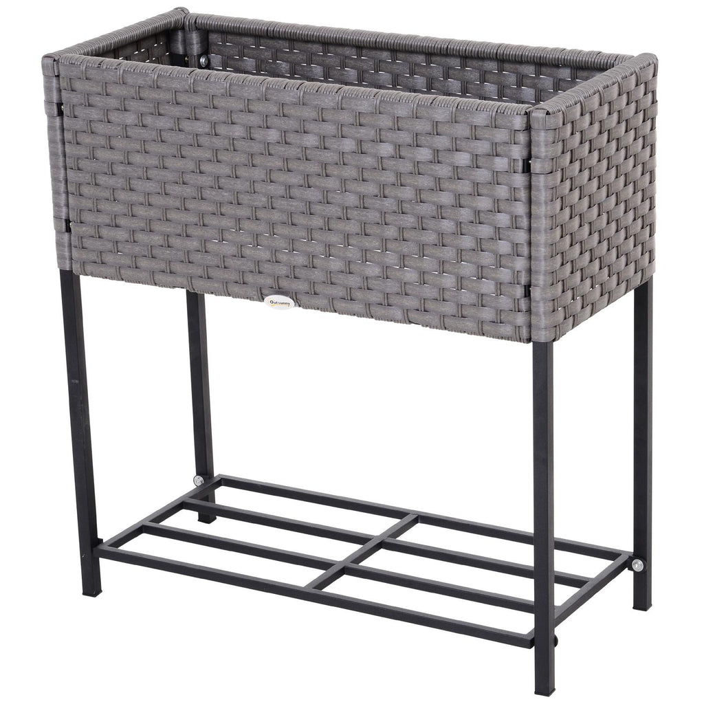 Jardinière en Métal et Polyéthylène Effet Osier 70x30x72 cm Gris