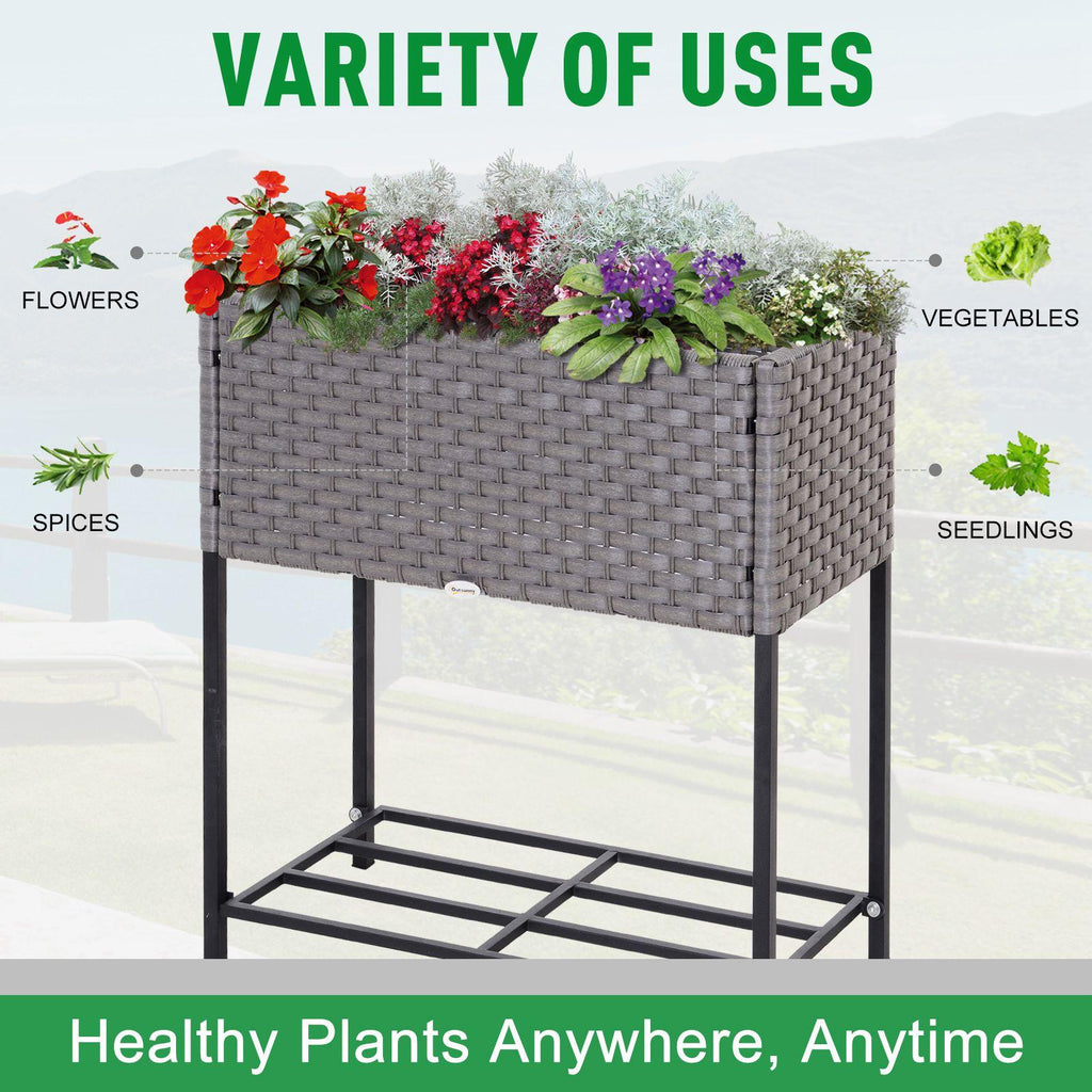 Une jardinière parfaite pour vous, qui souhaitez faire pousser votre jardin directement dans votre salon ! Fabriquée par , la jardinière est conçue pour une utilisation intérieure et extérieure. Construit avec des matériaux solides, tels que le PE et le métal, il a une texture qui reproduit l'osier et est équipé d'une étagère pratique en bas. Cultiver vos propres herbes et légumes à la maison n'a jamais été aussi simple !
