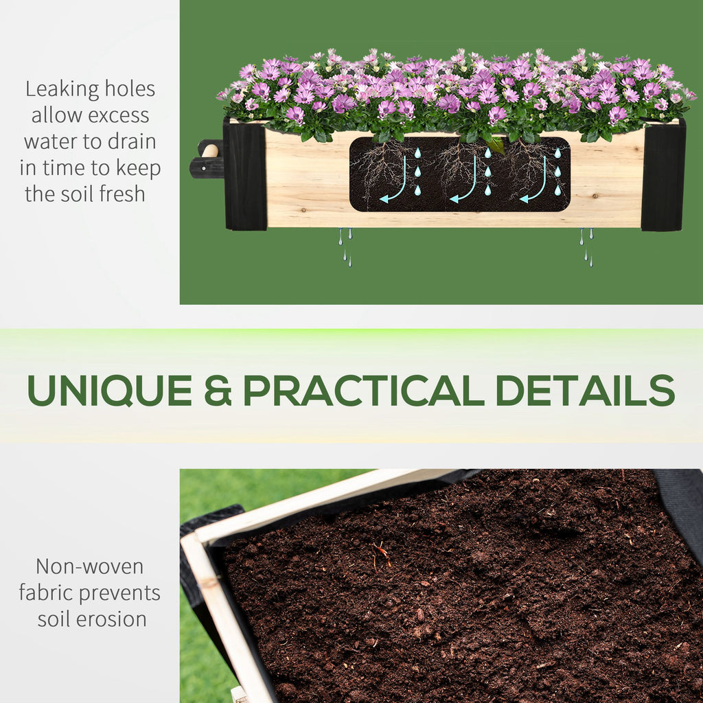 Notre jardinière surélevée apporte un aspect brut et naturel à votre décoration extérieure. Idéal pour les petits patios, terrasses, balcons, copropriétés et appartements. La jardinière offre amplement d'espace pour vos amies les plantes et est composée de deux roues pour être déplacée d'un endroit à l'autre à la recherche de la lumière parfaite. Découvrez ce lit surélevé et donnez à vos plantes l'espace dont elles ont besoin.