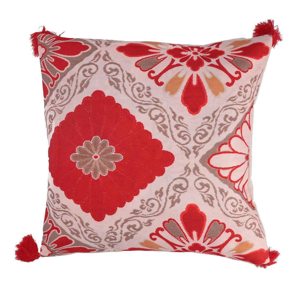 Questa fodera per cuscino è realizzata in un tessuto di alta qualità, reso ancora più elegante dai suoi decori intricati. Le nappe arancioni aggiungono un tocco vivace e giocoso al design complessivo. Le dimensioni quadrate di 40x40 cm rendono questa fodera adatta per cuscini di varie misure, aggiungendo un tocco di colore e stile a qualsiasi ambiente.